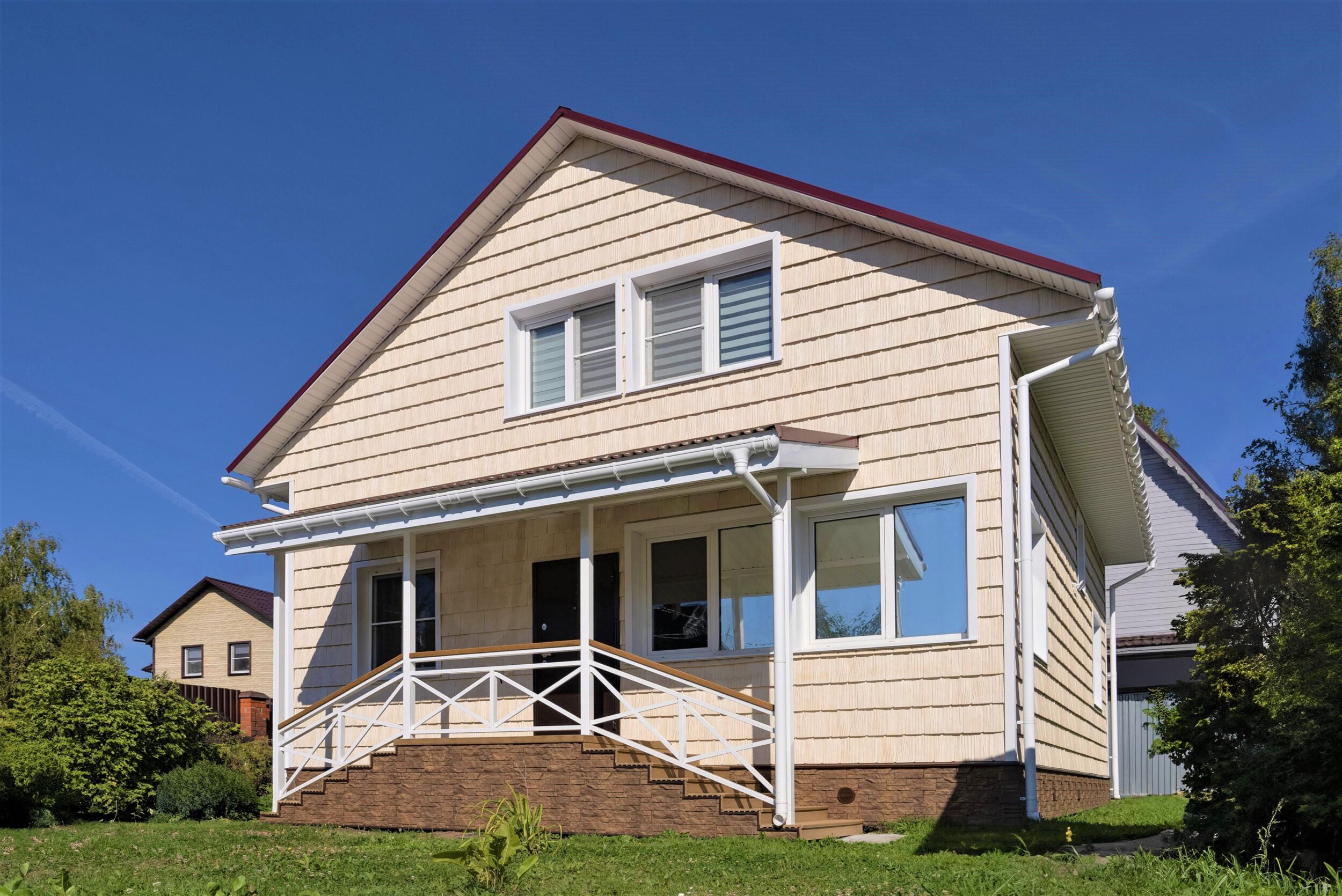 Фасадные панели ПВХ– один из самых популярных вариантов наружной отделки благодаря легкости, простоте монтажа и огромному выбору дизайнов. Они идеально имитируют натуральные материалы, придавая дому респектабельный вид без лишних затрат.