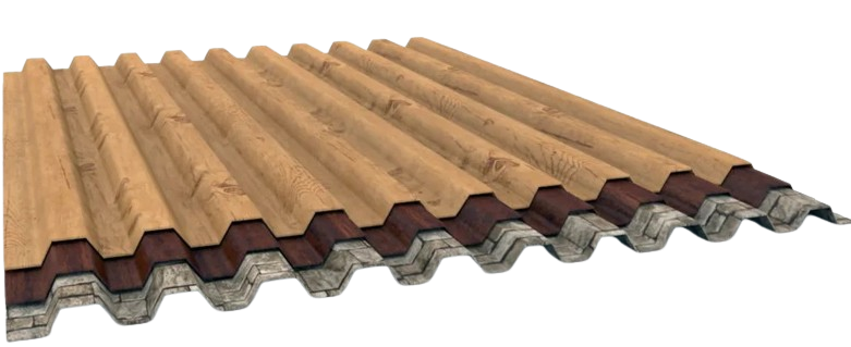 Оцинкованное покрытие (140–275 г/м2) защищает сталь от ржавчины. Полимерное покрытие (полиэстер, пурал, пластизол) дополнительно оберегает от УФ-излучения, дождя и перепадов температур. Срок службы – 10–50 лет в зависимости от условий эксплуатации.