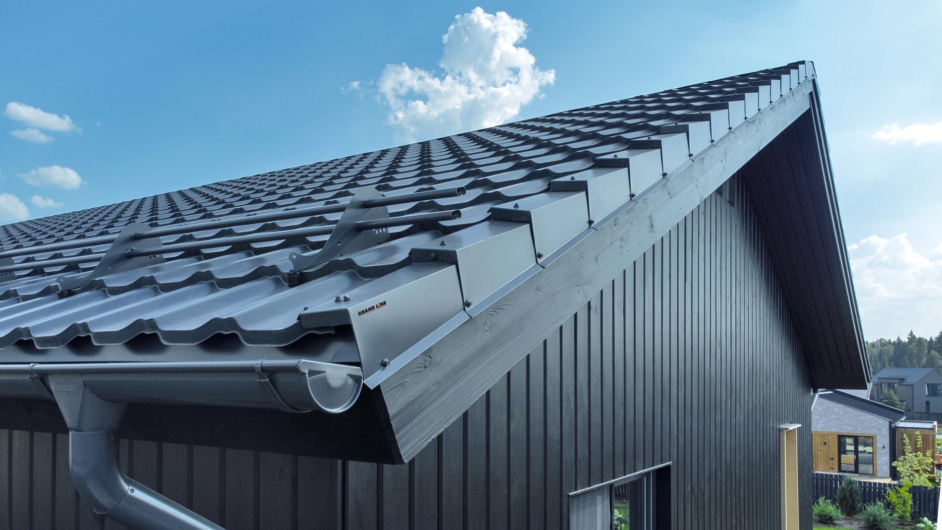 Черепица «Kvinta Plus» имеет центральные канавки на каждом листе, что значительно увеличивает прочность кровли.