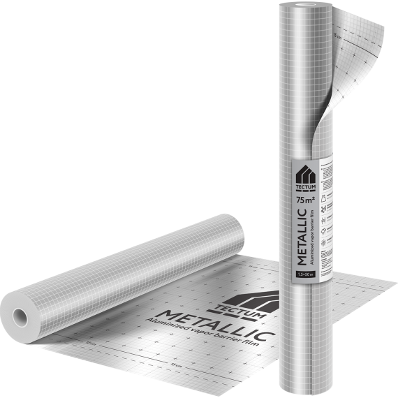 Tectum Metallic — инновационная фольгированная пароизоляция с теплоотражающим эффектом. Идеальное решение помещений с повышенной влажностью. Огнестойкая основа, экологически безопасный состав, монтаж без зазоров.