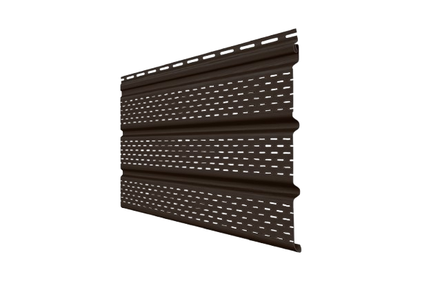 Софиты Classic представлены в четырех элегантных оттенках: белый, графитовый серый, шоколадный, коричневый. Их поверхность имитирует натуральное дерево с точной передачей текстуры – от плавных линий годовых колец до выразительного рисунка древесных волокон. Дизайн панелей стилизован под классическую деревянную вагонку, придавая фасадам благородный и естественный вид.